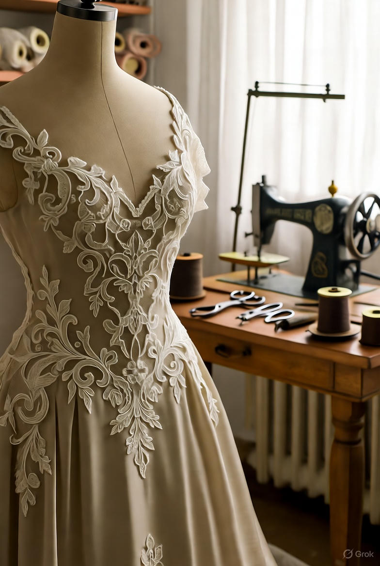 Ogni fase della creazione ti vede protagonista. Ascoltiamo le tue idee, le traduciamo in disegno e perfezioniamo insieme ogni dettaglio fino al tuo abito perfetto.